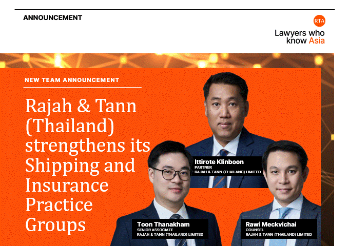 Rajah & Tann (Thailand) Limited strengthens its Shipping and Insurance Practice Groups Read More »