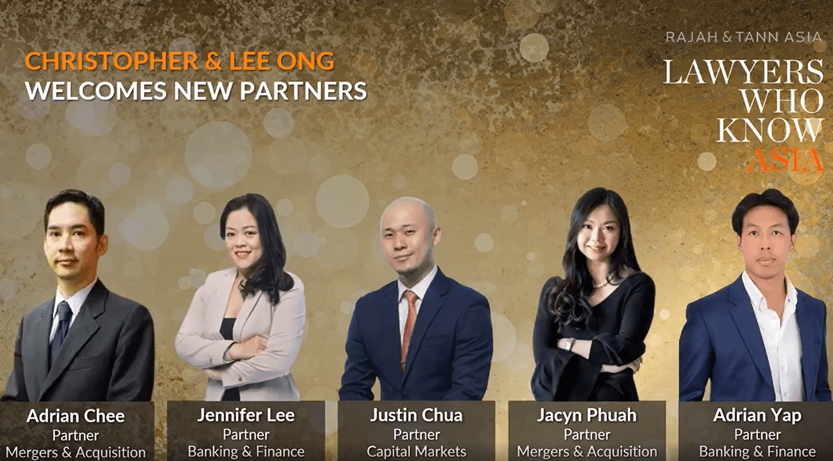 Christopher & Lee Ong (“CLO”), a member firm of Rajah & Tann Asia (“RTA”), significantly strengthens its Corporate team with Adrian Chee, Jennifer Lee, Justin Chua, Jacyn Phuah, and newly minted partner, Adrian Yap. Together with their respective teams of lawyers and staff, the new teams add tremendous depth to CLO’s M&A, Equity and Debt Capital Markets, and Banking & Finance Practices.