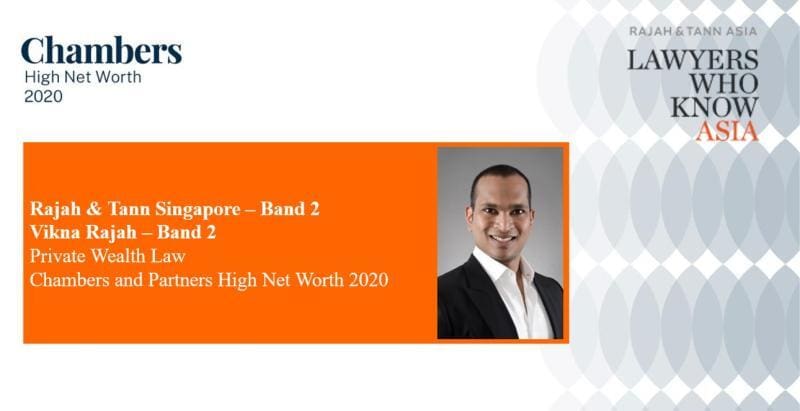 Rajah & Tann Singapore and partner Vikna Rajah have both been ranked Band 2 for Private Wealth Law by Chambers High Net Worth 2020