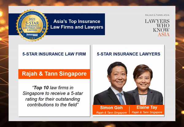 Rajah & Tann Singapore, as well as Simon Goh (Singapore) and Elaine Tay (Singapore) recognised in Insurance Business Asia’s inaugural 5-Star Insurance Law Firms and Lawyers report