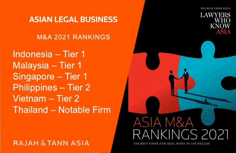 Rajah & Tann Asia recognised as one of Asia’s top firms in M&A work by Asian Legal Business in 2021