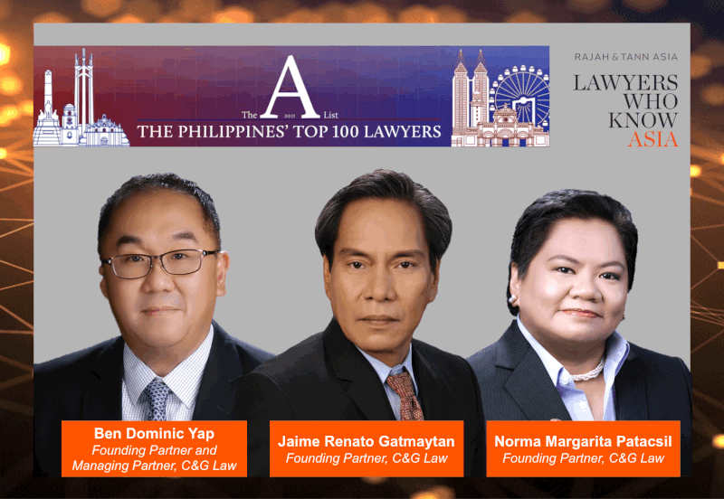 Managing Partner, Ben Yap and Partners Jaime Renato Gatmaytan and Norma Margarita Patacsil recognised in the A-List of the Philippines’ Top 100 Lawyers by Asia Business Law Journal