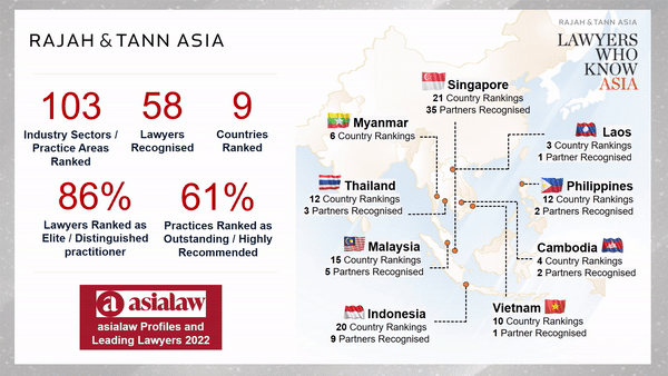 Rajah & Tann Asia continues to be top ranked across Southeast Asia region according to Asialaw Leading Lawyers 2022.