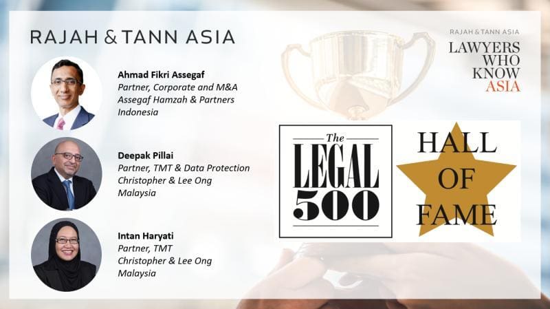 Ahmad Fikri Assegaf and Intan Haryati from Assegaf Hamzah & Partners, as well as Deepak Pillai from Christopher & Lee Ong featured in The Legal 500 (Legalease)’s Hall of Fame.