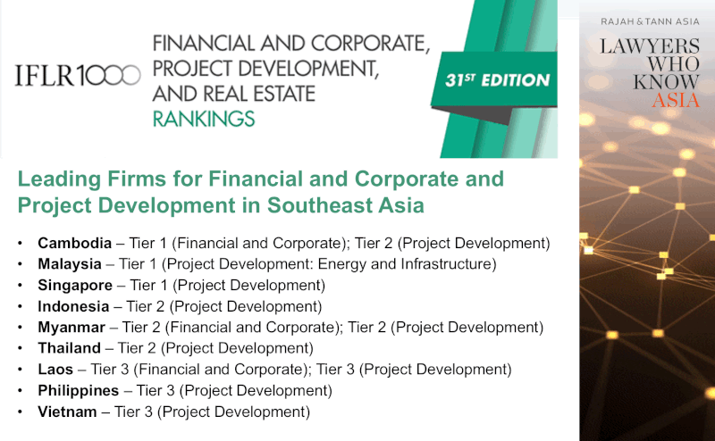 Rajah & Tann Asia continues to be recognised as leading firms in “Financial and Corporate”...