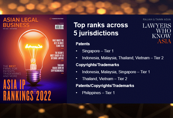 Rajah & Tann Asia secures top-tier rankings in the Asia IP Rankings 2022 by Asian Legal Business