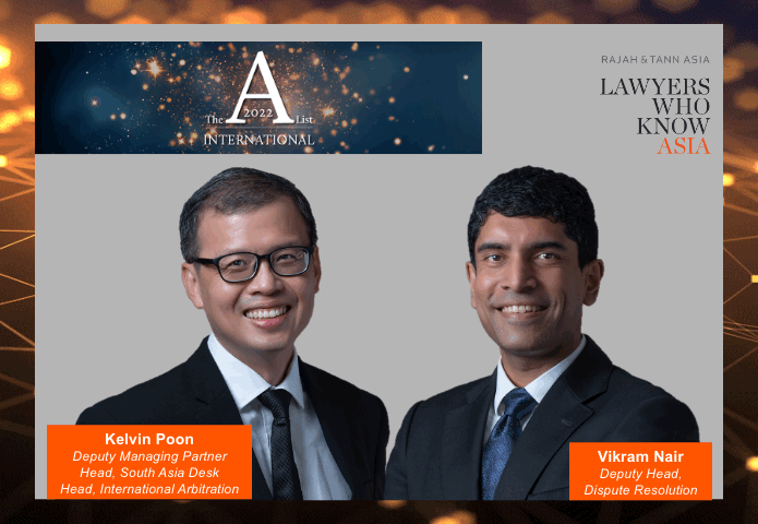 Kelvin Poon (Singapore) and Vikram Nair (Singapore) identified in India Business Law Journal’s International A-List 2022