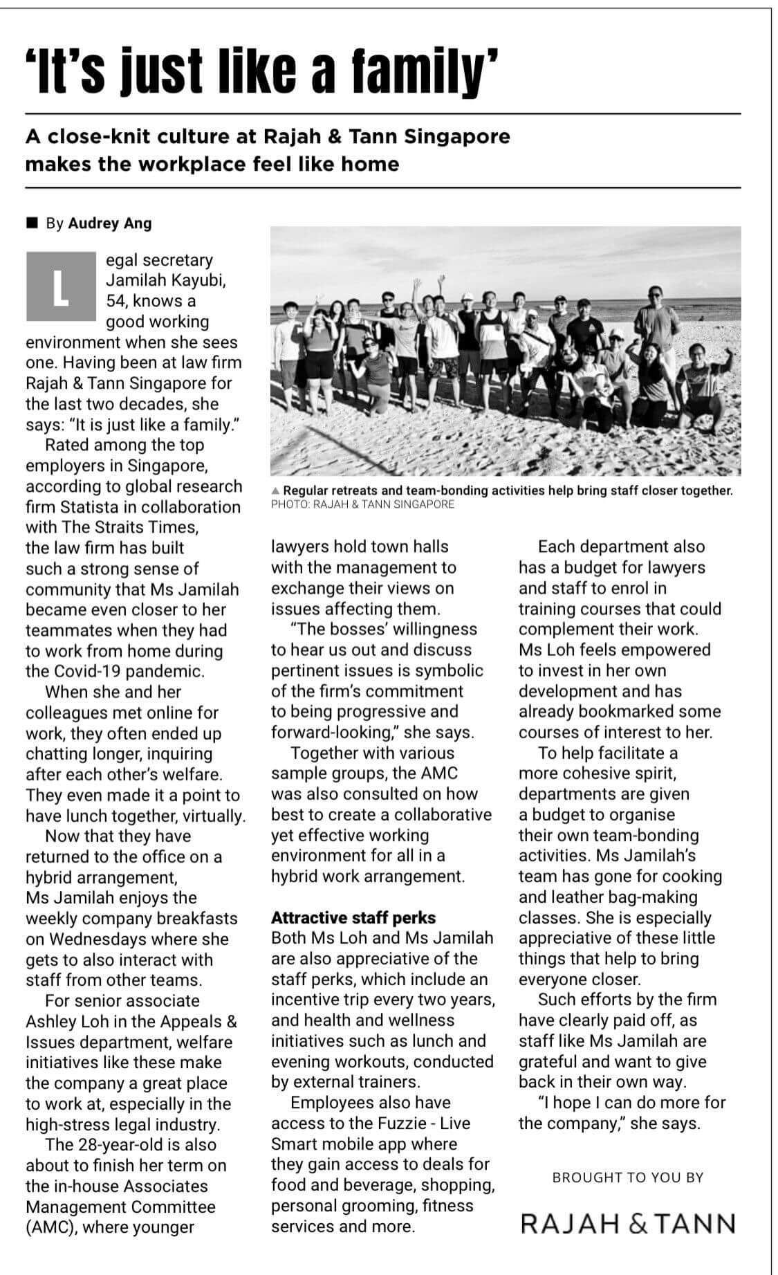 Rajah & Tann recognised as top employer in The Straits Times “Singapore’s Best Employers 2023” list