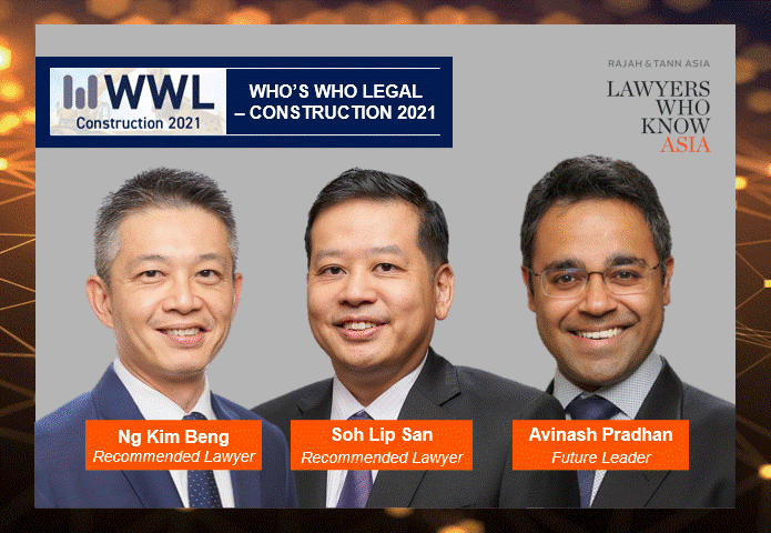 Ng Kim Beng (Singapore), Soh Lip San (Singapore) and Avinash Pradhan (Singapore) recognised in Who’s Who Legal (WWL): Construction 2021