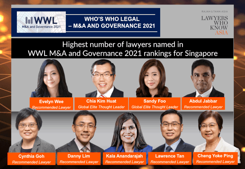 Rajah & Tann Singapore has the highest number of lawyers named in Who’s Who Legal: M&A and Governance 2021 rankings for Singapore