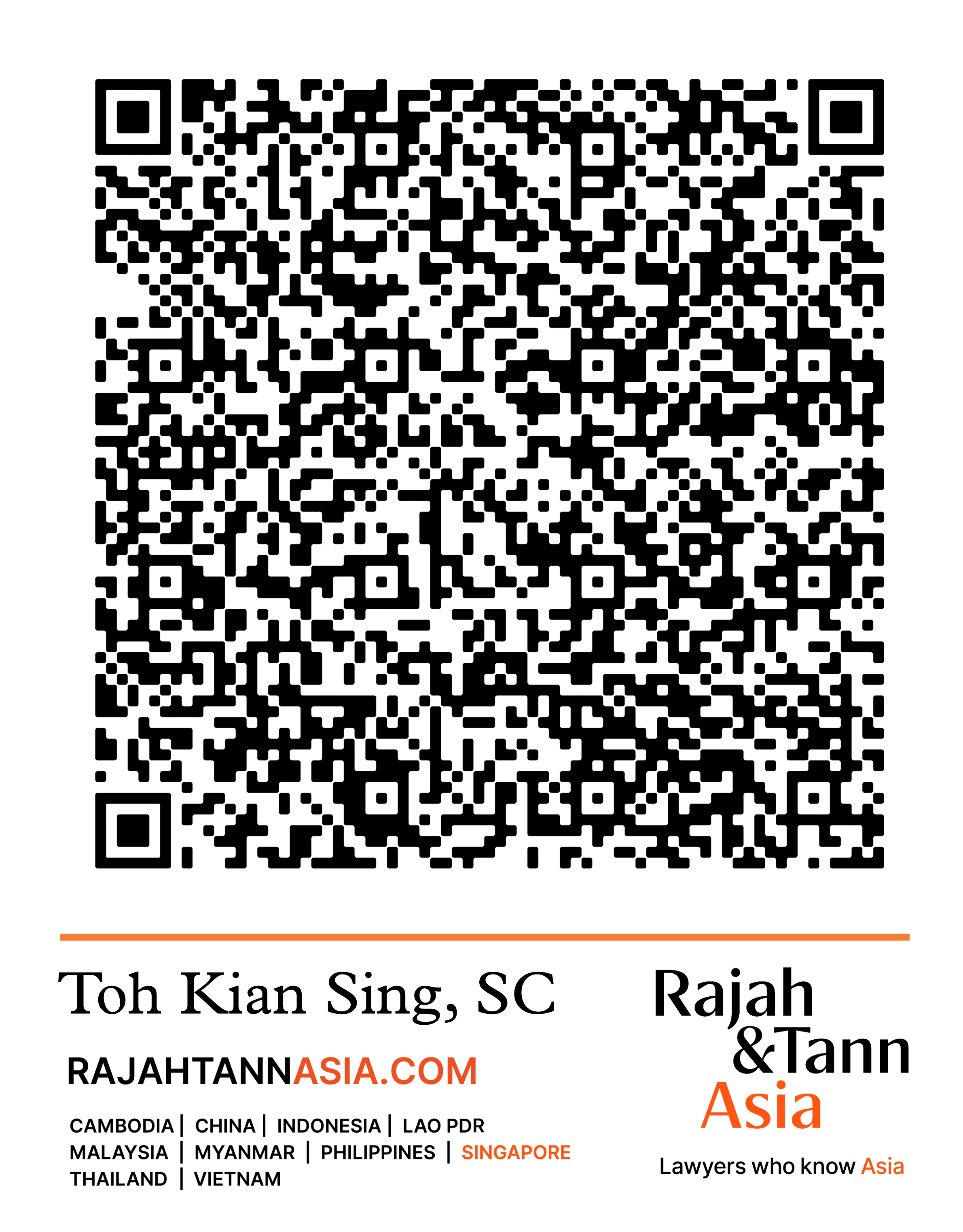Toh Kian Sing, SC is a Senior Partner and, until recently, Head of the Shipping & International Trade practice of Rajah & Tann Singapore. He was appointed Senior Counsel by the Supreme Court of Singapore in January 2007. He has also been appointed as a Senior Accredited Specialist for Maritime and Shipping Law under the Singapore Academy of Law’s Specialist Accreditation Scheme.