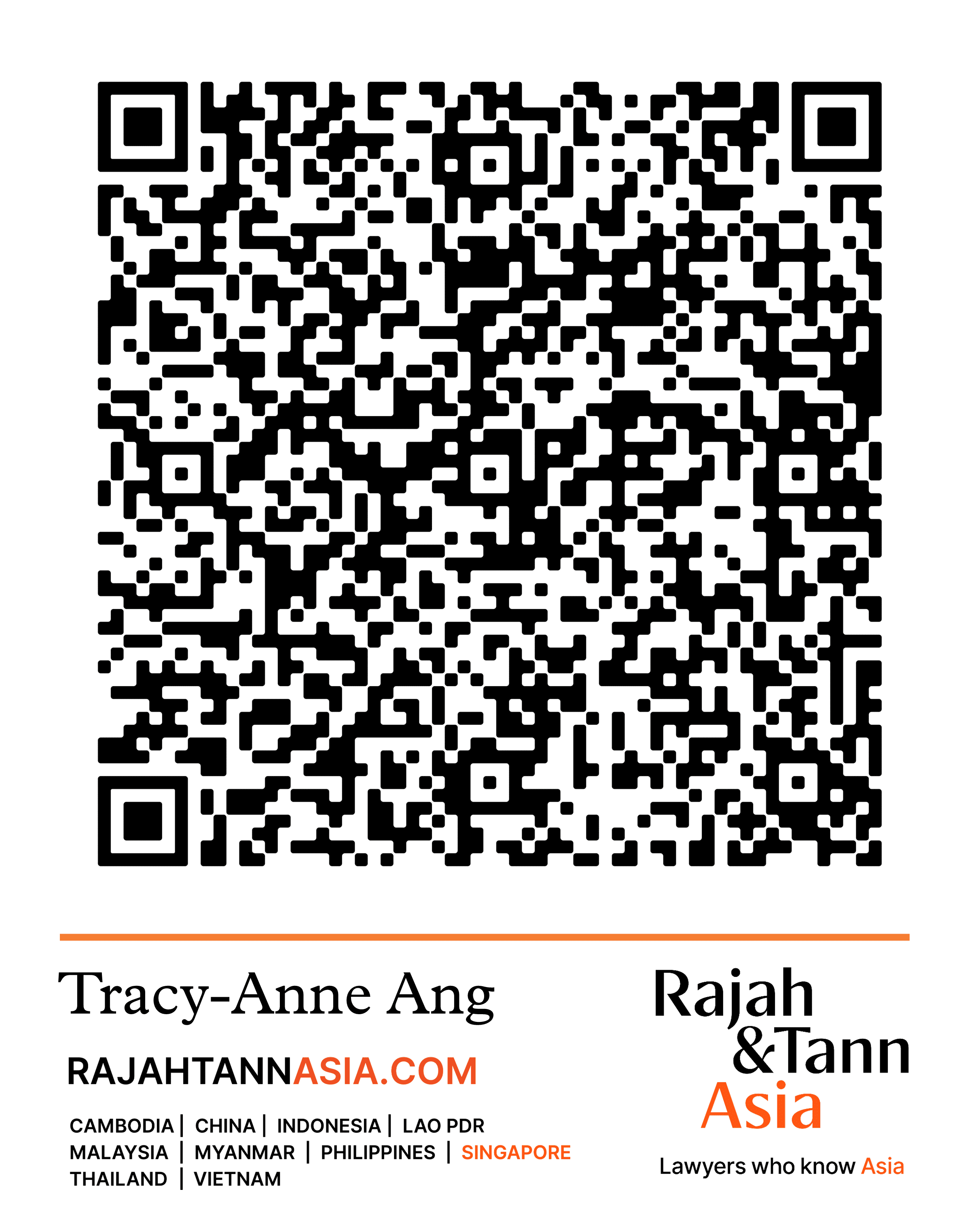Tracy Ang is Head of the firm’s Mergers & Acquisitions Practice and Deputy Head of the Corporate & Transactional Group. She has over 20 years of experience in this field including Venture Capital and Private Equity transactions, having acted for various MNCs, startups, SMEs, private equity investors and venture capital funds, on acquisition, investment and divestment transactions across a range of industries with a focus on the fintech, medtech, e-commerce sectors and environmental solutions.