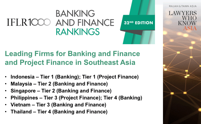 Rajah & Tann Asia has once again been recognised as leading firms for Banking and Finance in all Southeast Asian jurisdictions ranked by IFLR1000 .