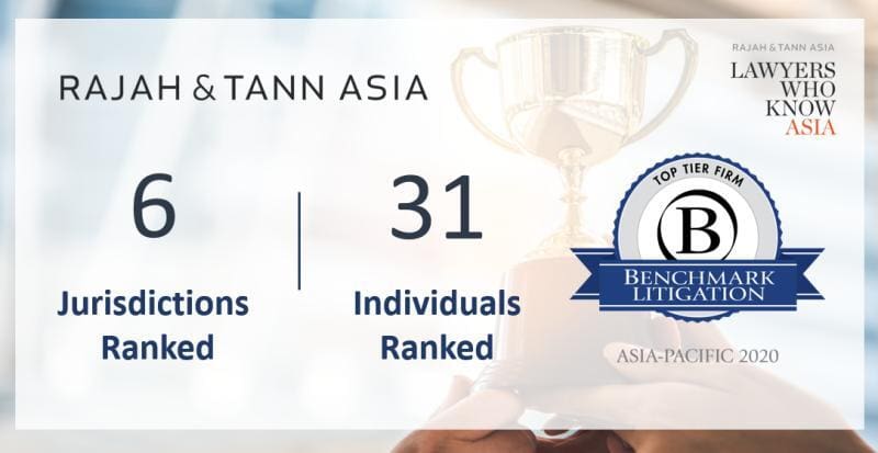 Rajah & Tann Asia and its lawyers continue to be highly ranked in the 2020 edition of Benchmark Litigation Asia-Pacific rankings.