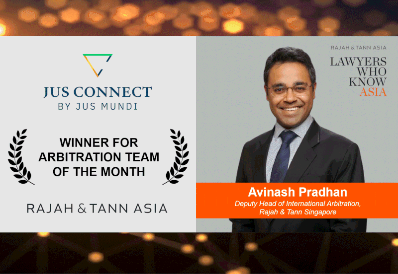Rajah & Tann Asia has received the Arbitration Team of the Month Award from Jus Connect by Jus Mundi for our “extensive work in international arbitration” and “initiatives championing workplace mental health”.