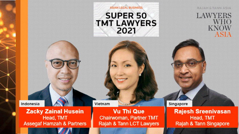 Rajah & Tann Asia partners Rajesh Sreenivasan (Singapore), Zacky Husein (Indonesia) and Vu Thi Que (Vietnam) have been recognised in Asian Legal Business’ inaugural Asia Super 50 TMT Lawyers list.