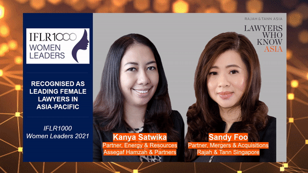 Partners Sandy Foo from Rajah & Tann Singapore and Kanya Satwika from Assegaf Hamzah & Partners for being named as IFLR1000 Women Leaders in Asia-Pacific!