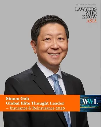 Simon Goh, Head of the Insurance & Reinsurance Practice of Rajah & Tann Singapore has been recognised as a Global Elite Thought Leader in Insurance & Reinsurance by Who’s Who Legal 2020.