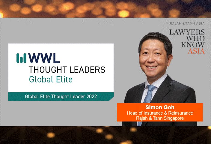 Simon Goh, Head of the Insurance & Reinsurance practice, has been recognised as a Global Elite Thought Leader in the Who’s Who Legal Insurance & Reinsurance 2022 – Legal Marketplace Analysis.