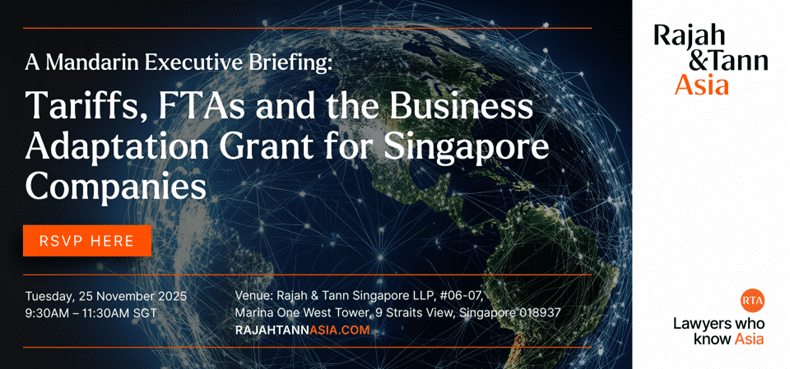 The speakers discussed recent tariff measures and implications for businesses in Singapore, and explored practical strategies to restructure supply chains and manage compliance risks. They also shared insights into how to leverage Singapore’s extensive free trade agreement network and trusted regulatory regime. They provided an overview of Enterprise Singapore’s Business Adaptation Grant which offers subsidies to eligible local companies for advisory and reconfiguration support given trade disruptions. It is to be noted that Rajah & Tann has been appointed Business Partner for Business adaptation Grant. For more information, please refer to our News Release here.