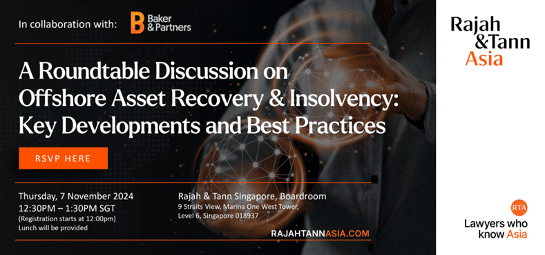 On 7 November 2024, Rajah & Tann Singapore, in collaboration with Baker & Partners, organised a round table discussion on Offshore Asset Recovery & Insolvency: Key Developments and Best Practices. The event tackled the latest developments and trends in asset recovery and insolvency where offshore structures are involved. Topics discussed at the roundtable discussion included: