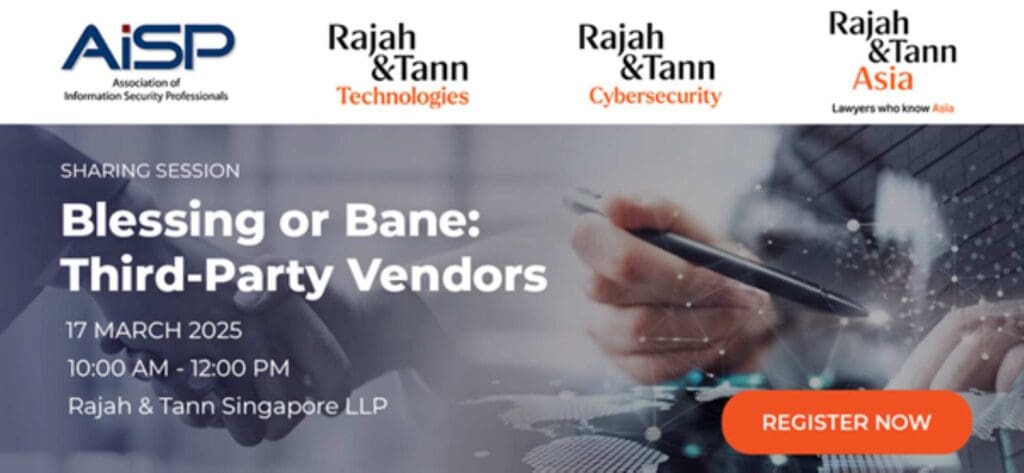 On 17 March 2025, Wong Onn Chee, Chief Executive Officer of Rajah & Tann Cybersecurity and Technical Director of Rajah & Tann Technologies, and Partner Glen Chiang from the Technology, Media & Telecommunications Practice gave a talk to the Association of Information Security Professionals (“AiSP“) at the sharing session titled “Blessing or Bane: Third-Party Vendors”.