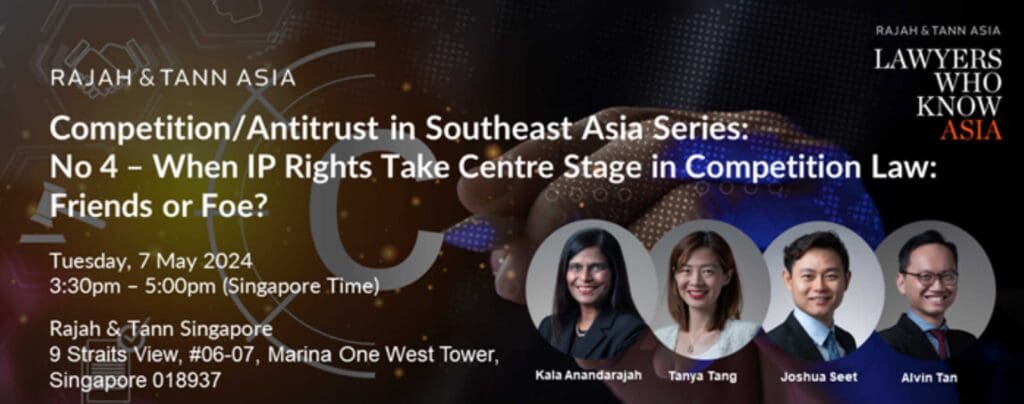 On 7 May 2024, Rajah & Tann’s Competition & Trade Practice Group organised an in-person seminar titled “Competition/Antitrust in Southeast Asia Series: No 4 – When IP Rights Take Centre Stage in Competition Law: Friends or Foes?”.