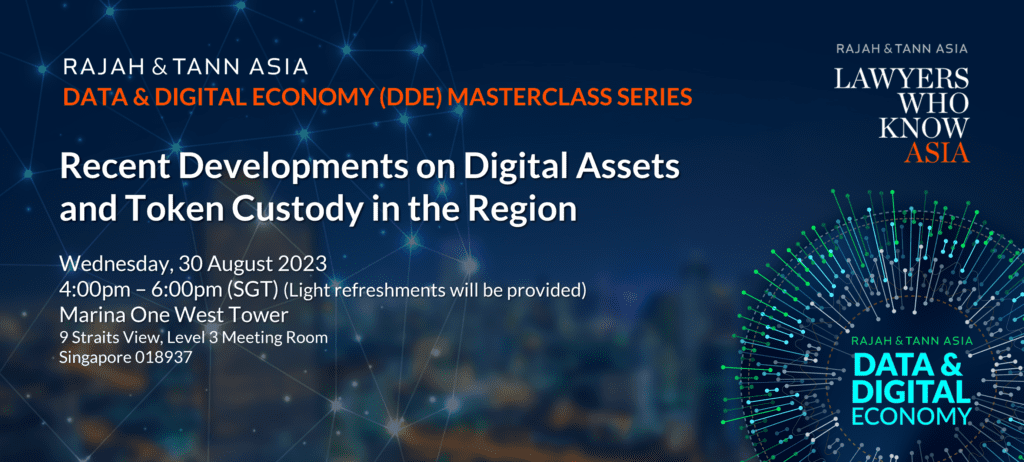On 30 August 2023, Rajah & Tann Asia organised the DDE Masterclass on “Recent Development on Digital Assets and Token Custody in the Region”. Our legal experts from across Rajah & Tann Asia shared their insights on developments in digital assets in Singapore, Indonesia, Malaysia and Thailand.