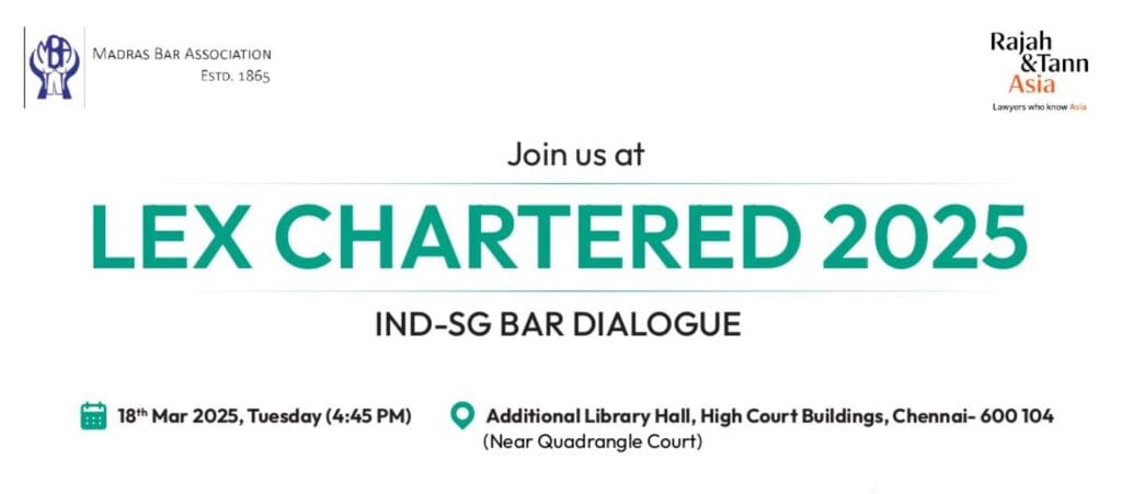 On 18 March 2025, Madras Bar Association and Rajah & Tann Asia co-hosted the Bar Dialogue between India and Singapore at Lex Chartered 2025 held in Chennai, India. The event brought together legal experts that provided valuable insights into the evolving legal frameworks in these two countries.
