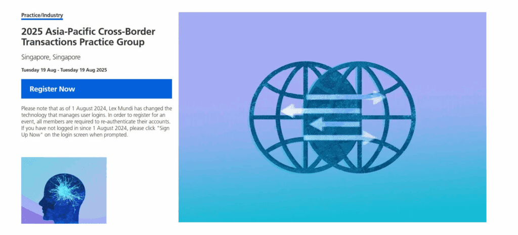 On 19 August 2025, Lex Mundi and Rajah & Tann Singapore co-organised the 2025 Asia-Pacific Cross-Border Transactions Practice Group Meeting. The event brought together leading transactional lawyers from Lex Mundi member firms in Asia, the Middle East and Europe, to explore the evolving landscape of cross-border dealmaking.