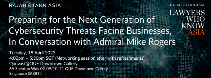 On 18 April 2023, Steve Tan, Deputy Head of the Technology, Media & Telecommunications Practice and Director of Rajah & Tann Cybersecurity, was one of the speakers at an event titled “Preparing for the Next Generation of Cybersecurity Threats Facing Businesses, In Conversation with Admiral Mike Rogers”. Brunswick’s Senior Advisor Admiral Mike Rogers is a four-star admiral whose 37-year career in the U.S. Navy culminated as Commander of the US Cyber Security Command and Director of the National Security Agency.