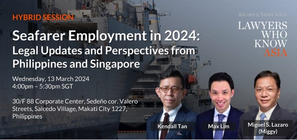 On 13 March 2024, Rajah & Tann organised a hybrid event titled “Seafarer Employment in 2024: Legal Updates and Perspectives from Philippines and Singapore”.