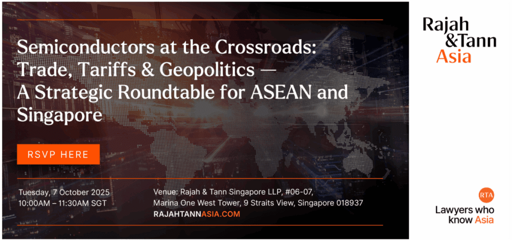 On 7 October 2025, the Competition & Antitrust and Trade Practice held the “Semiconductors at the Crossroads: Trade, Tariffs & Geopolitics — A Strategic Roundtable for ASEAN and Singapore”.