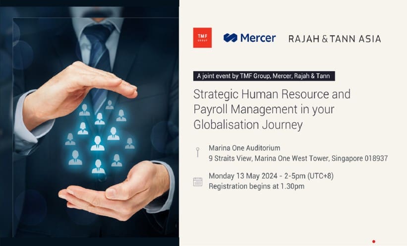 On 13 May 2024, in conjunction with World HR Congress (WHRC) 2024, Mercer, TMF Group and Rajah & Tann Singapore jointly conducted a seminar titled “Strategic Human Resource and Payroll Management in your Globalisation Journey”. Topics covered included: